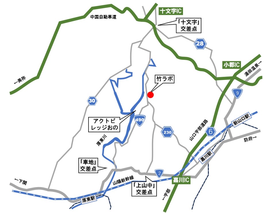 所在地 〒754-1311 山口県宇部市小野8345番地2 竹の総合施設竹ラボ内